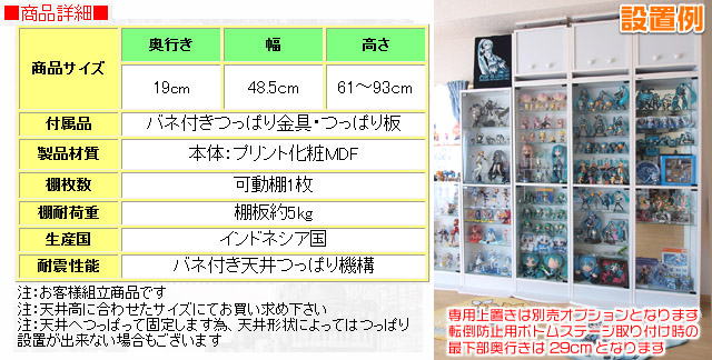 天井つっぱりフィギュアラック 薄型19cm奥行き専用