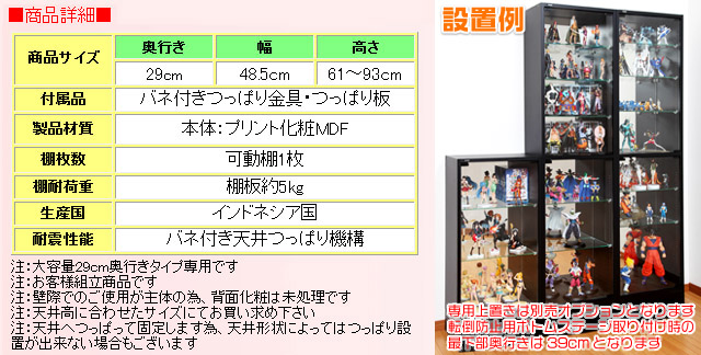 天井つっぱりフィギュアラック 大容量29cm奥行き専用