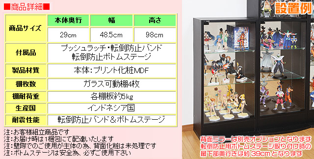 奥行き29cmの大容量タイプだから、様々なサイズのコレクションの展示にお役立ていただけます